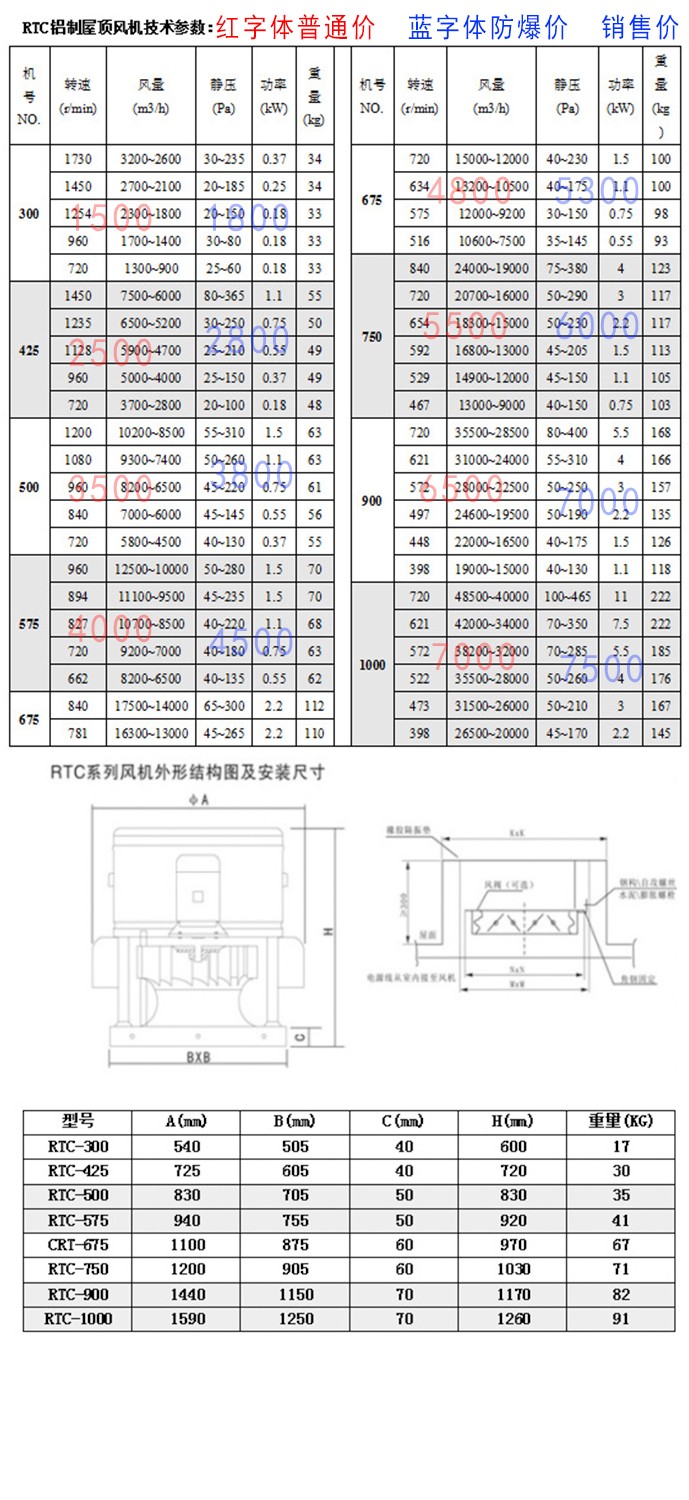 風機系列價格表
